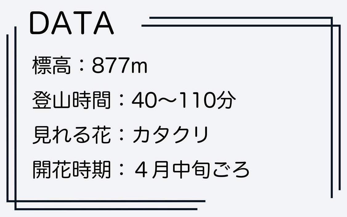 山塊西部の斜面にはソメイヨシノやサトザクラなど、約5000本もの桜が植えられた「さくらの里」も。さくらの里は車でも行けるので、そこに車を止めてお花見をしたり、少しだけ山に足を踏み入れるのもよいのではないでしょうか?