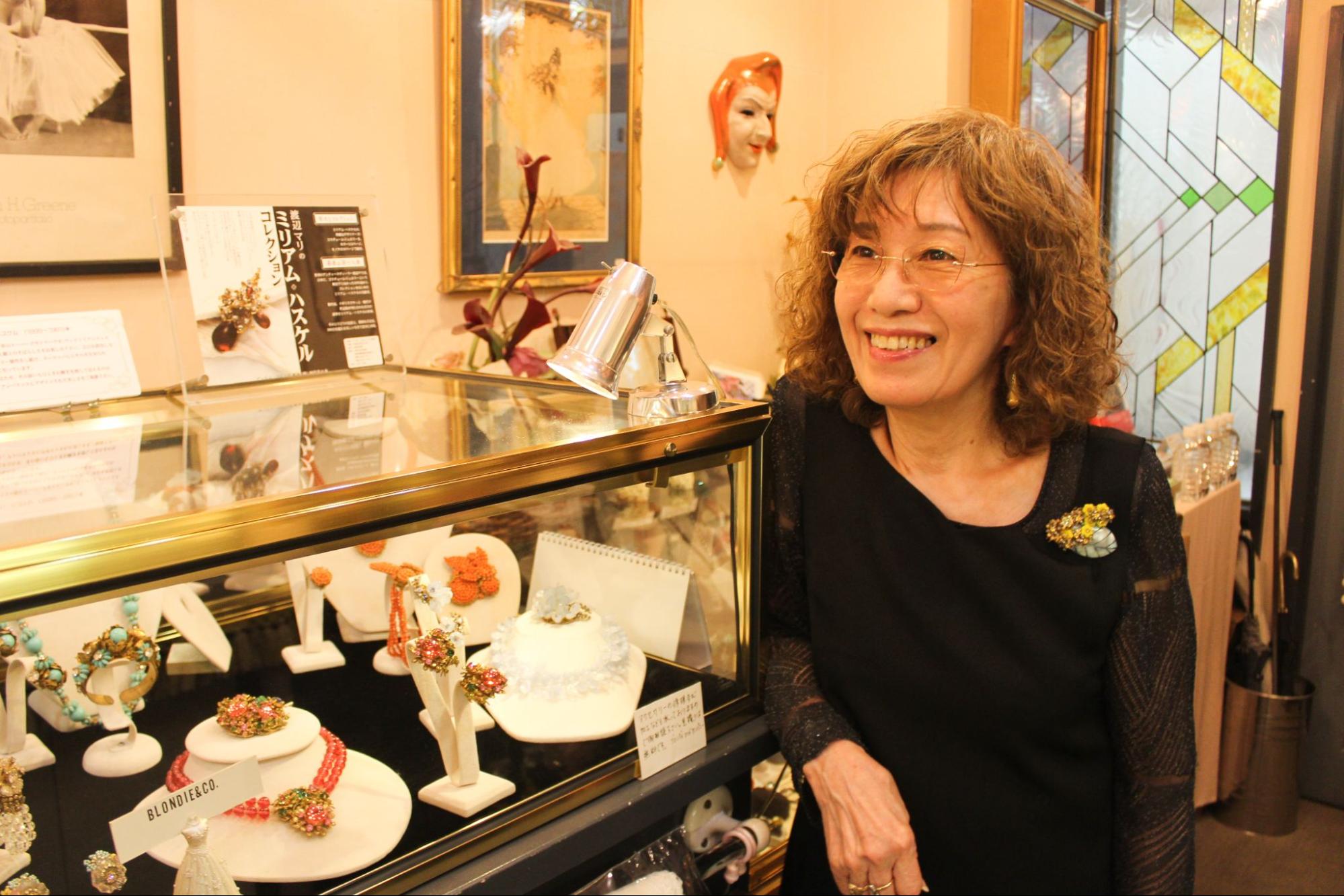 東京都国分寺市でアンティークショップ「ブロンディ アンド カンパニー」を営んでいる渡辺マリさん。渡辺さん自らが海外で買い付けてきたビンテージジュエリーをはじめ、照明、古伊万里、漆器、ドレス、帽子などを販売している。心をくすぐるアンティークがところ狭しと並んでいる店内で一際目を引くのが、ミリアム・ハスケルが制作したコスチュームジュエリーだ。